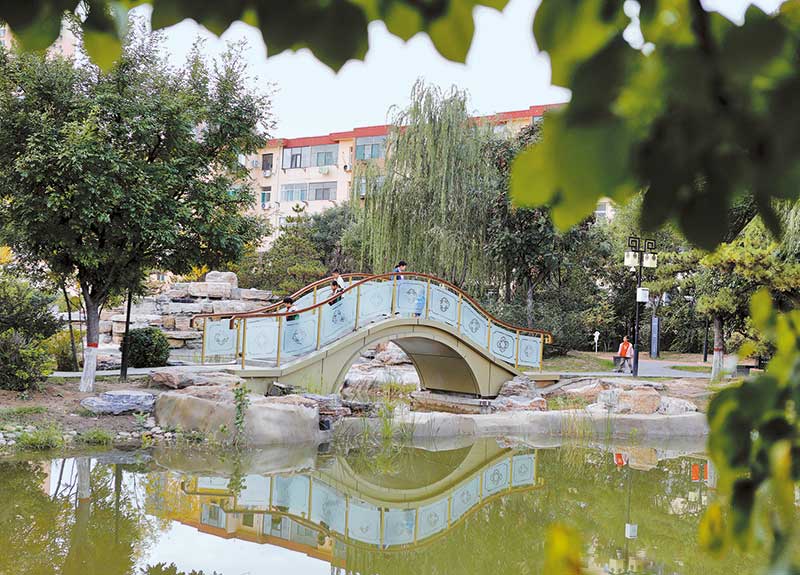 • 市民在市城區(qū)無暄園口袋公園漫步